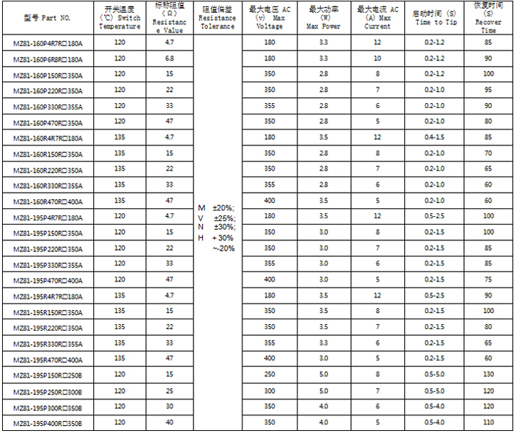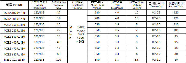 1.型號:MZ81-芯片型;MZ82-殼裝型